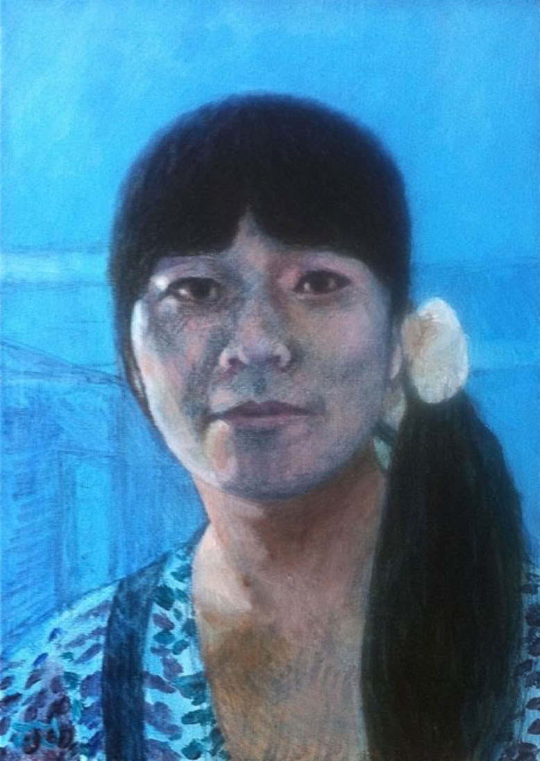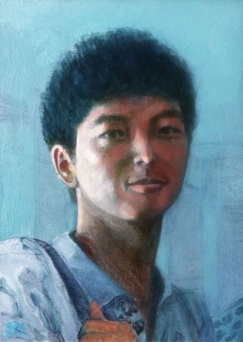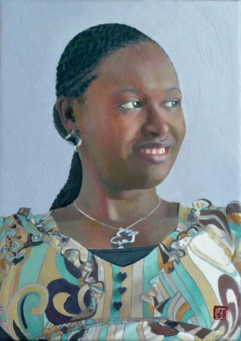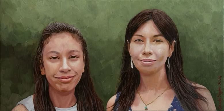 I much prefer working on double portraits because of the sense of sentiment which is generated by the presence of another, in this instance the double portrait is of two sisters who have a close bond despite an age gap. I also prefer to work half life size because, for me, that scale (which equates exactly to the scale which we perceive in our mirror reflection) possesses a more informal and humanly intimate feel. In the collection of C & Z B., Lancashire, U.K.